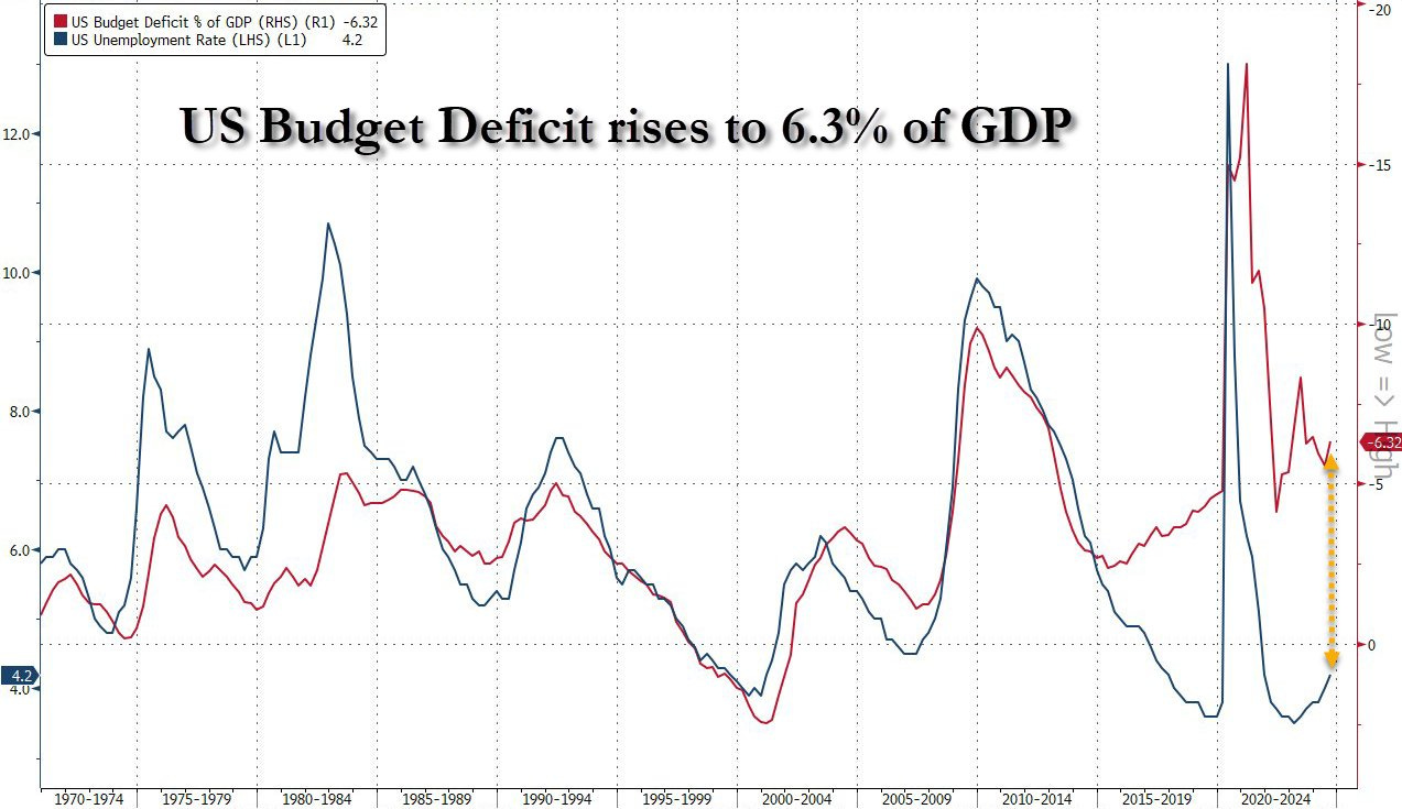 Thâm hụt riêng Q3 là 6.3% GDP và Q2 là 5.6% GDP, lần cuối cùng thâm hụt này xảy ra tỉ lệ thất nghiệp là 7.2% ở đáy khủng hoảng 2008