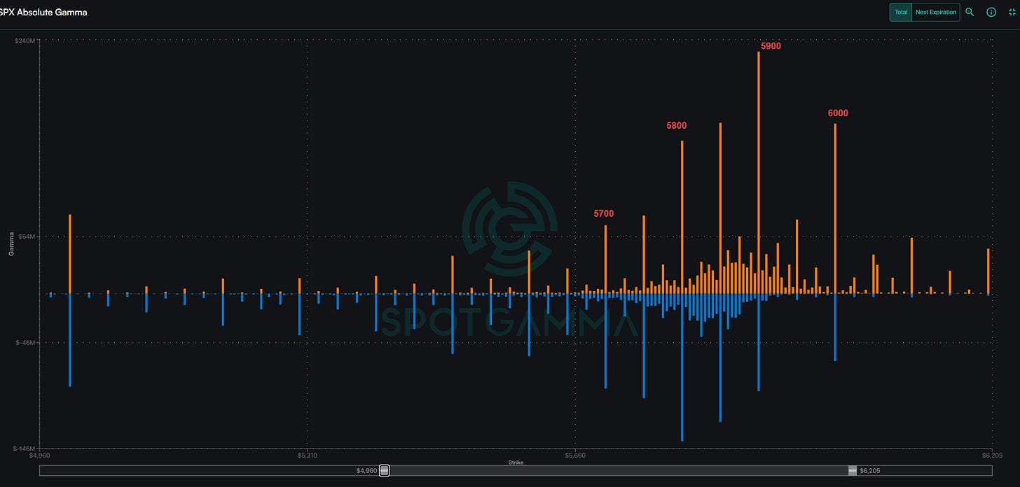 Xét về cấu trúc SPX vẫn đang duy trì bullish bias trên 5800 trong môi trước positive gamma với lực hút duy trì ở đầu trên về call wall 5900.