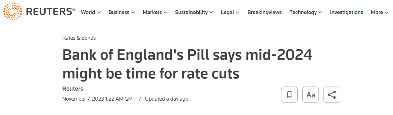 Chỉ có NHTW của Anh là ra tín hiệu sẽ cắt giảm lãi suất từ giữa năm 2024, trong khi các thành viên tại Fed đều đang tỏ thái độ sẽ tiếp tục quan sát dữ liệu kinh tế.