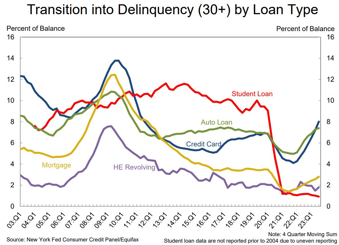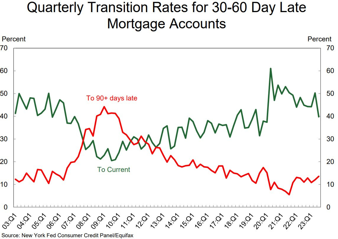 Tỷ lệ nợ mortgage quá hạn 30-60 ngày và >90 ngày tăng trở lại mức trước đại dịch.