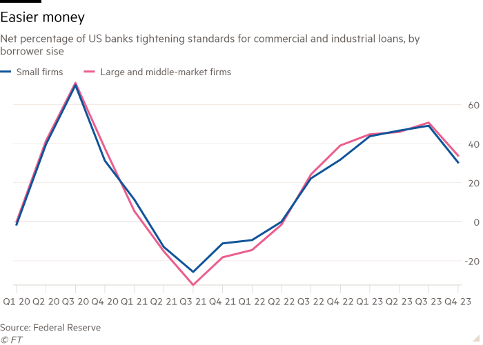Cuộc khảo sát các bên cho vay mới nhất của Fed gần đây cho thấy số lượng ngân hàng thắt chặt các tiêu chuẩn cho vay đang giảm nhẹ.