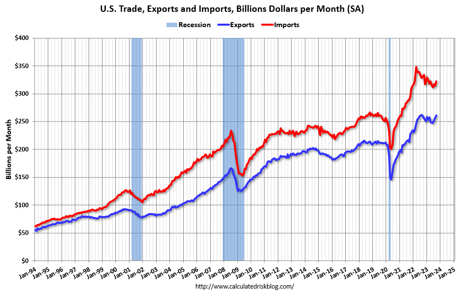 Thâm hụt cán cân thương mại tháng 9/2923: -USD 61.5 tỷ, tăng thâm hụt thêm -USD 2.9 tỷ USD so với tháng 8 (-USD 58.7 tỷ).