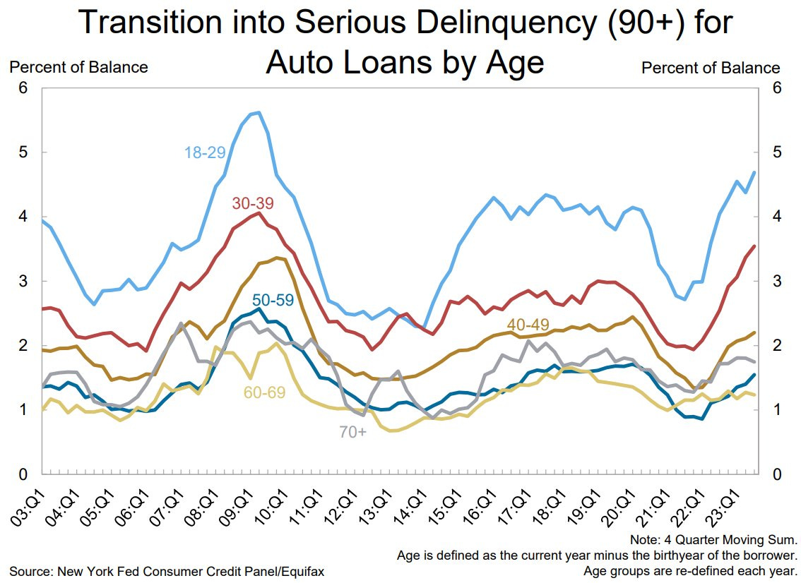 Căng thẳng nợ tín dụng vào các khoản vay mua ô tô tập trung ở nhóm người trẻ tuổi (18-39 tuổi).