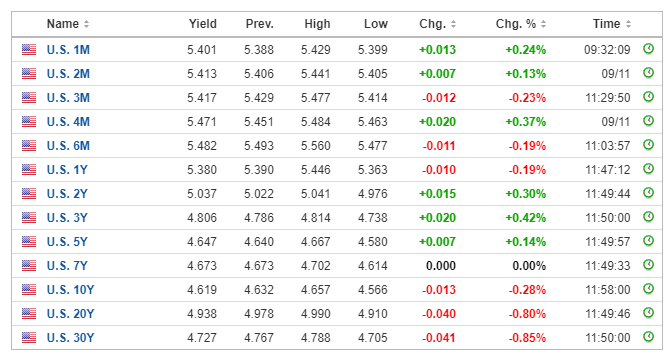 Lợi suất trái phiếu đa phần ghi nhận giảm hôm nay, đặc biệt ở những trái phiếu dài hạn:
