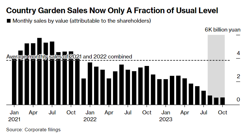 Country Garden ghi nhận sự giảm mạnh về doanh số bán hàng trong bối cảnh khủng hoảng về tài chính, đây là mức giảm lớn nhất trong nhiều năm.