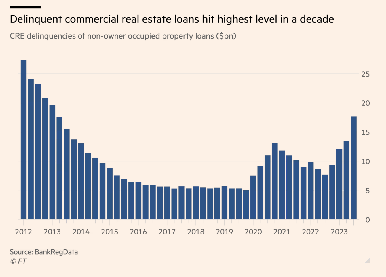 Nợ vay bất động sản thương mại quá hạn đạt mức cao nhất trong 10 năm tại các ngân hàng Mỹ