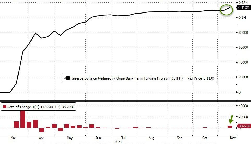 Nguyên nhân có thể là do: Quỹ Hỗ trợ khẩn cấp của Fed cho các ngân hàng (BTFP) đã tăng mạnh thêm +3.9 tỷ USD, đưa tổng lên mức cao kỷ lục mới trên 113 tỷ USD, mức tăng lớn nhất kể từ tháng Sáu.