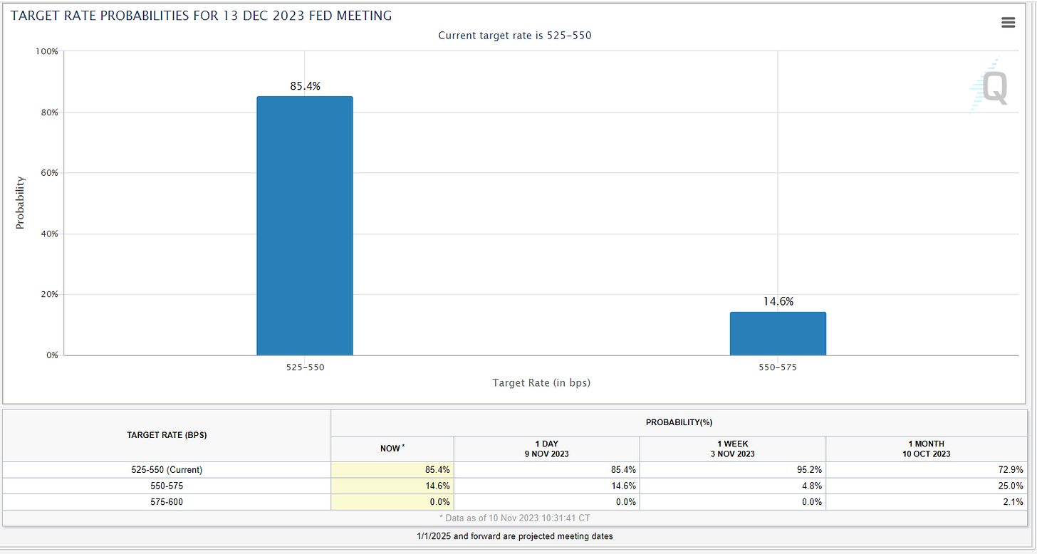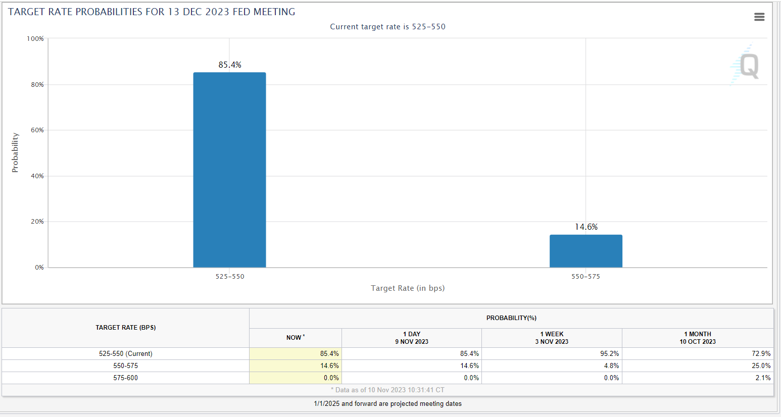Kỳ vọng của thị trường về khả năng Fed tăng lãi suất thêm +25bps dù khá yếu ớt nhưng đã tăng từ 4.8% tuần trước lên 14.6%.