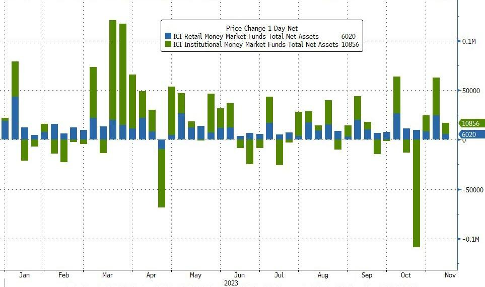 Dòng tiền đều đi vào cả 2 loại quỹ MMF trong 3 tuần liên tiếp: quỹ dành cho các nhà đầu tư nhỏ lẻ và quỹ của các tổ chức tín dụng.
