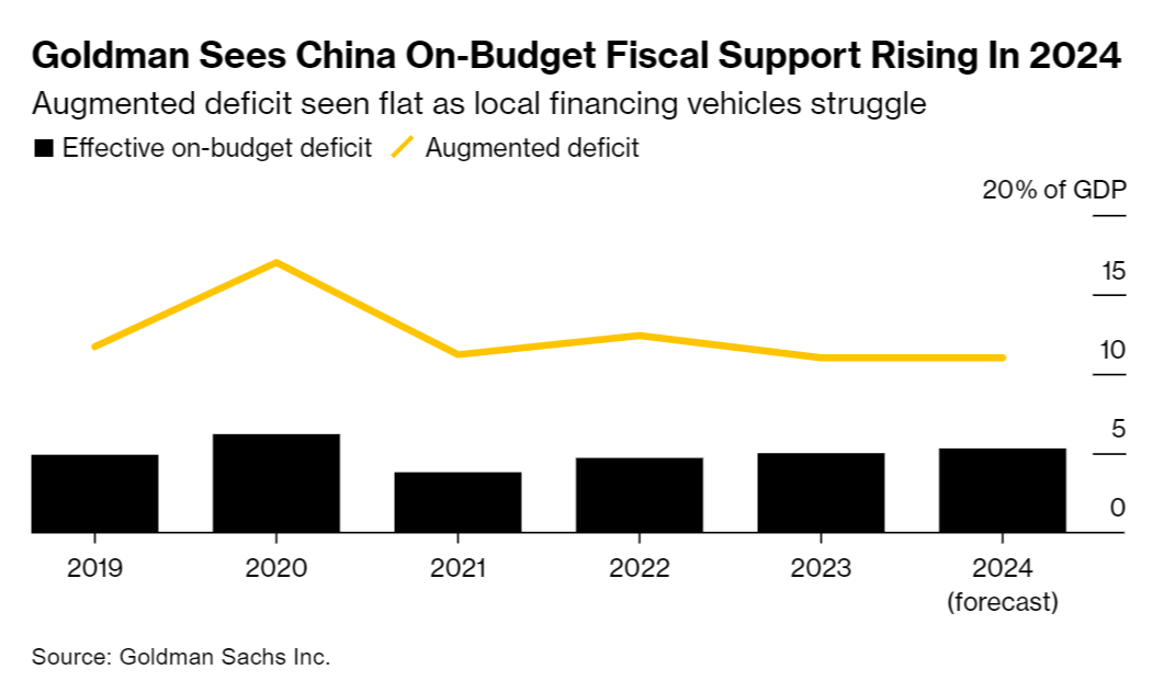 Goldman Sachs dự kiến thâm hụt sẽ duy trì ở mức -11% của GDP trong năm tới. Dự kiến việc phát hành thêm trái phiếu từ chính quyền địa phương sẽ được kéo lại do phát hành LGFV giảm đi.