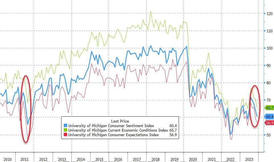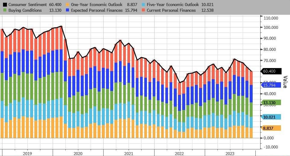 Tình hình tài chính hiện tại có sự cải thiện nhỏ trong tháng, song triển vọng kinh tế dài hạn đã giảm -12%, đặt phần lớn vào lo ngại về ảnh hưởng tiêu cực của lãi suất cao.