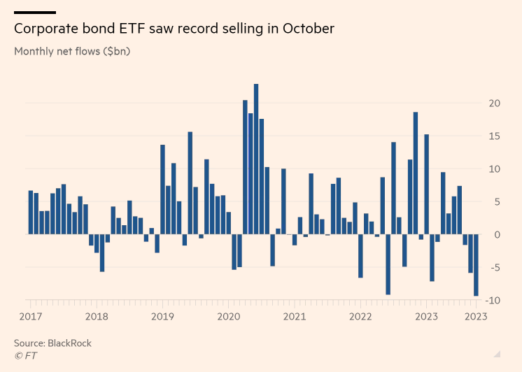 Các nhà đầu tư đã rút ròng -9.4 tỷ USD khỏi quỹ trái phiếu doanh nghiệp trong tháng 10 - một trong những mức rút vốn cao nhất trong lịch sử.