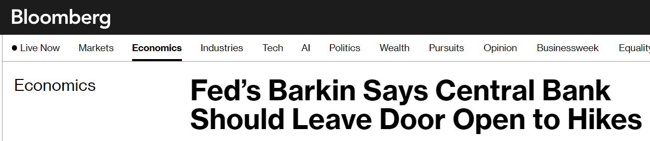 Cập nhật phát biểu quan chức Fed Thomas Barkin: “Fed nên cân nhắc tăng lãi suất trong trường hợp lạm phát còn dai dẳng.”