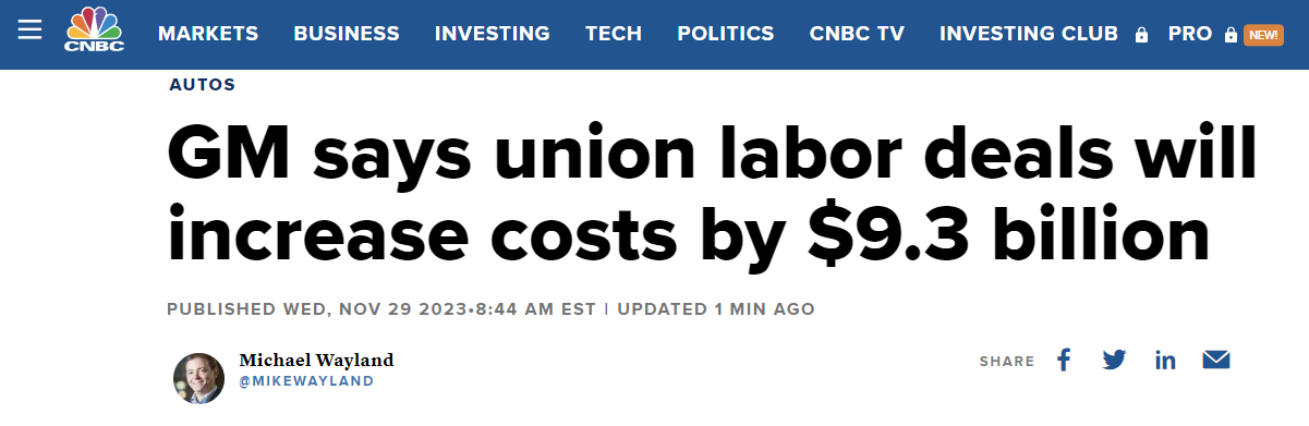 GM cho biết các thỏa thuận lao động của công đoàn có thể làm tăng chi phí thêm 9.3 tỷ USD.