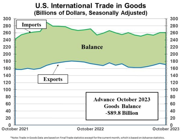 Thâm hụt thương mại hàng hóa của Mỹ tăng 3.4% trong tháng 10