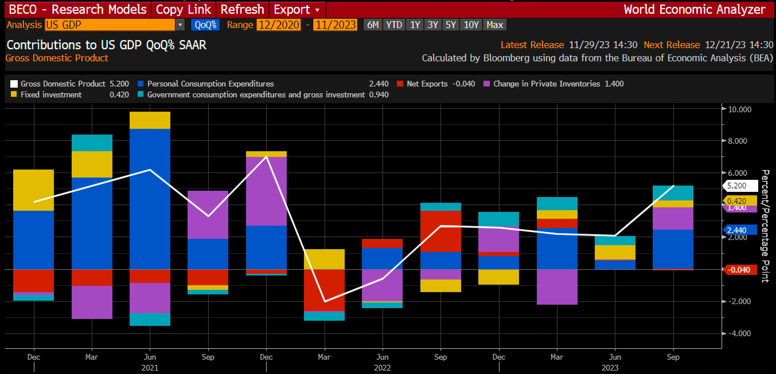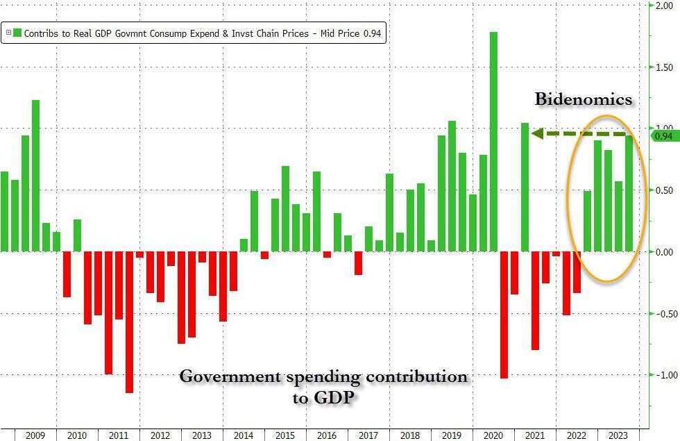 Tăng trưởng GDP quý III (và cả năm qua) cũng bị ảnh hưởng một phần từ gia tăng chi tiêu của chính phủ, góp phần 0.94% vào GDP, tương đương +5.5% QoQ quý III.