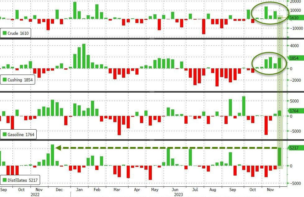 Sản phẩm chưng cất: +5.22 triệu (-100,000 so với dự kiến) - cao nhất kể từ tháng 12/2022.