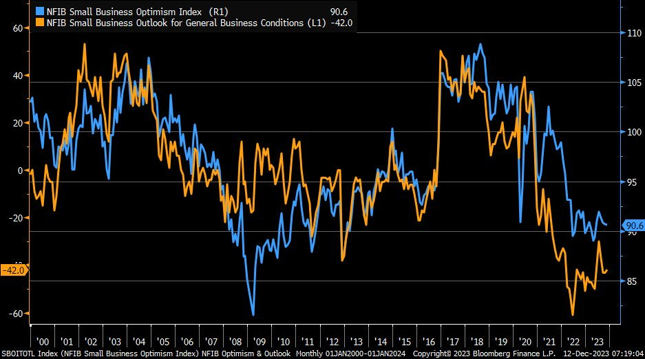 Chỉ số lạc quan doanh nghiệp nhỏ NFIB tháng 11 giảm nhẹ xuống 90.6 (từ mức 90.7 trong tháng trước).
