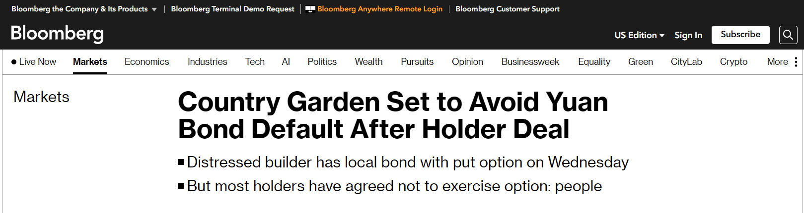 Country Garden có thể tránh được vụ vỡ nợ đầu tiên đối với trái phiếu bằng đồng nhân dân tệ (CNY) sau một thỏa thuận với các trái chủ.