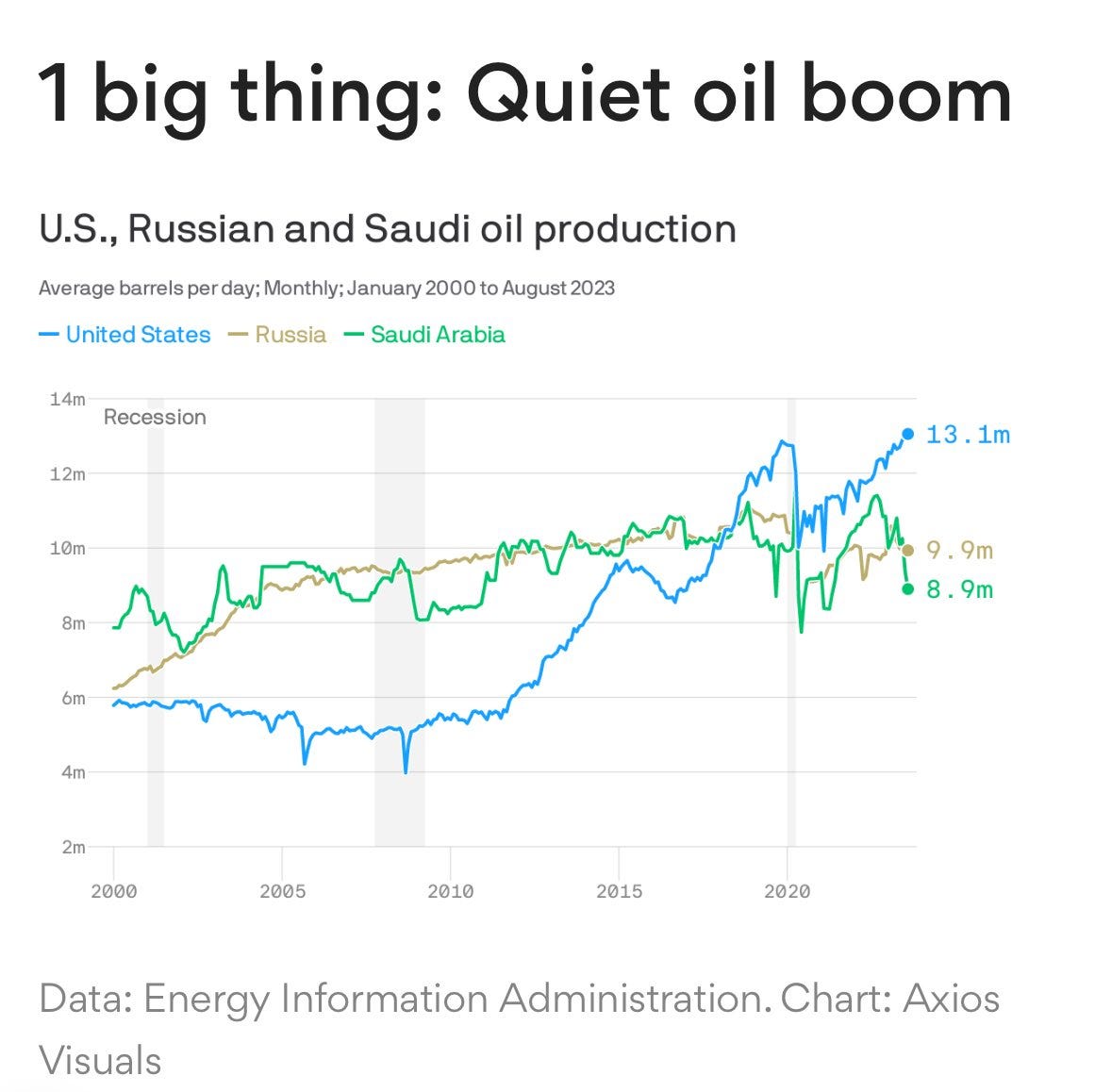 Sản lượng dầu của Mỹ đang ở mức kỷ lục, cao hơn bất kỳ quốc gia nào khác.