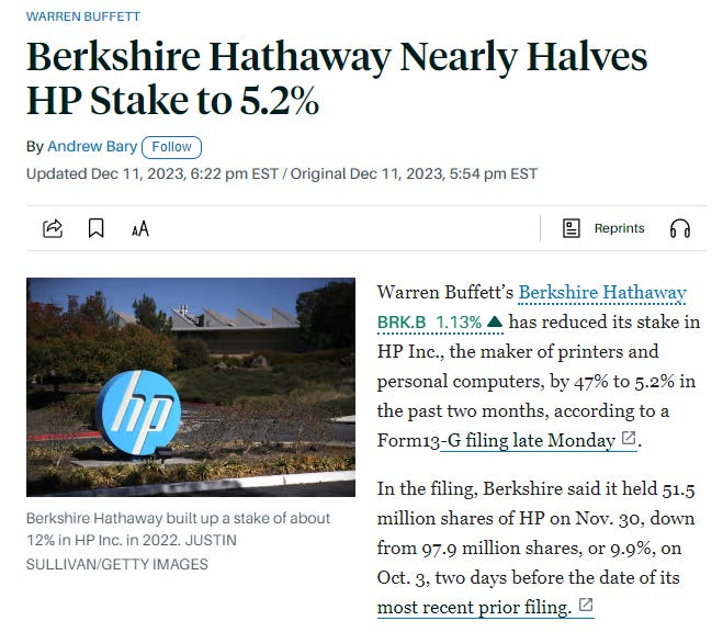 Giao dịch nội bộ của Warren Buffett: Berkshire Hathaway đã bán gần một nửa số cổ phần còn lại của mình trong HP