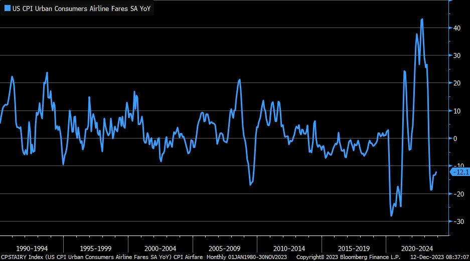 So với cùng kỳ năm ngoái, tăng trưởng của cấu phần giá vé máy bay vẫn nằm trong vùng giảm phát.