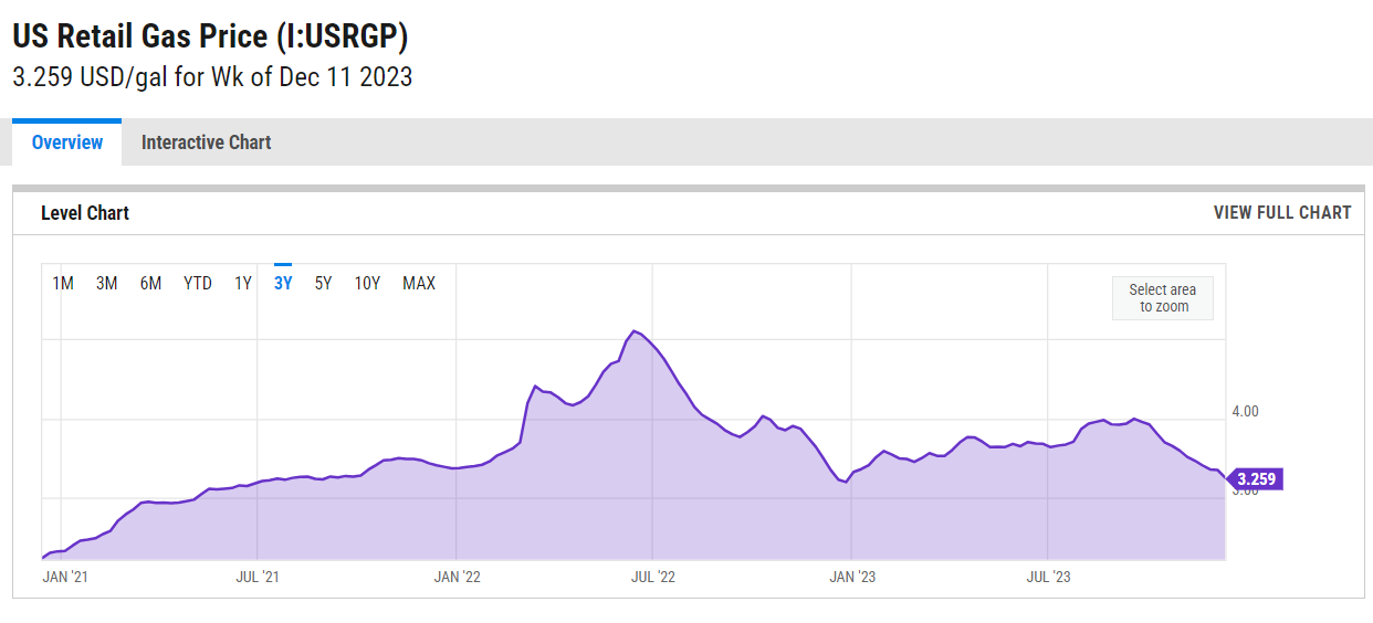 Điều này khiến giá gas bán lẻ đang ở mức thấp nhất trong 11 tháng và có thể giảm xuống dưới 3 USD lần đầu tiên kể từ năm 2021