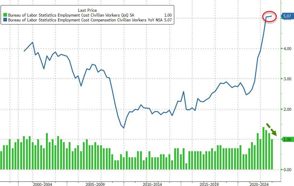 Mặc dù mức tăng giá thành lao động vẫn ở mức kỉ lục 5.07% YoY, mức lương trung bình theo giờ của lao động khối tư nhân vẫn trên đà lao dốc, sẽ góp phần hình thành cái nhìn của các thành viên FOMC về chiều hướng của lạm phát.