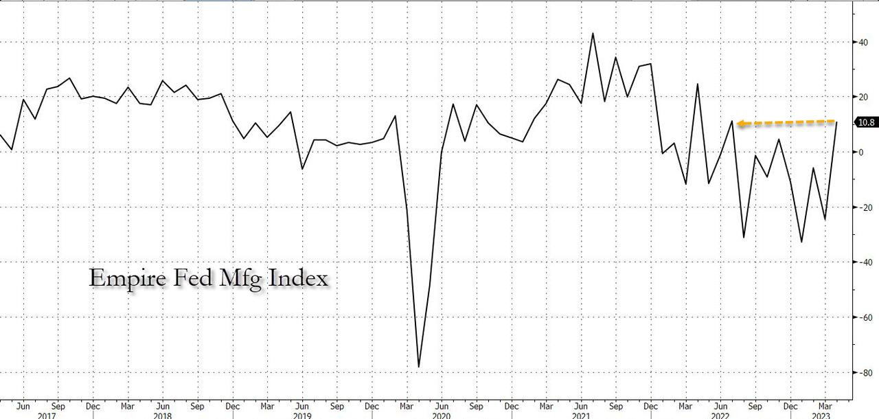 Chỉ số khảo sát hoạt động sản xuất của NY FED vượt mọi dự báo với số lượng đơn đặt hàng mới tăng mạnh nhất trong lịch sử. Theo đó chỉ số này tăng lên 10.8 từ con số -11.5 cuối tháng tháng 3 với mức dự báo tiếp tục suy giảm về -18.0