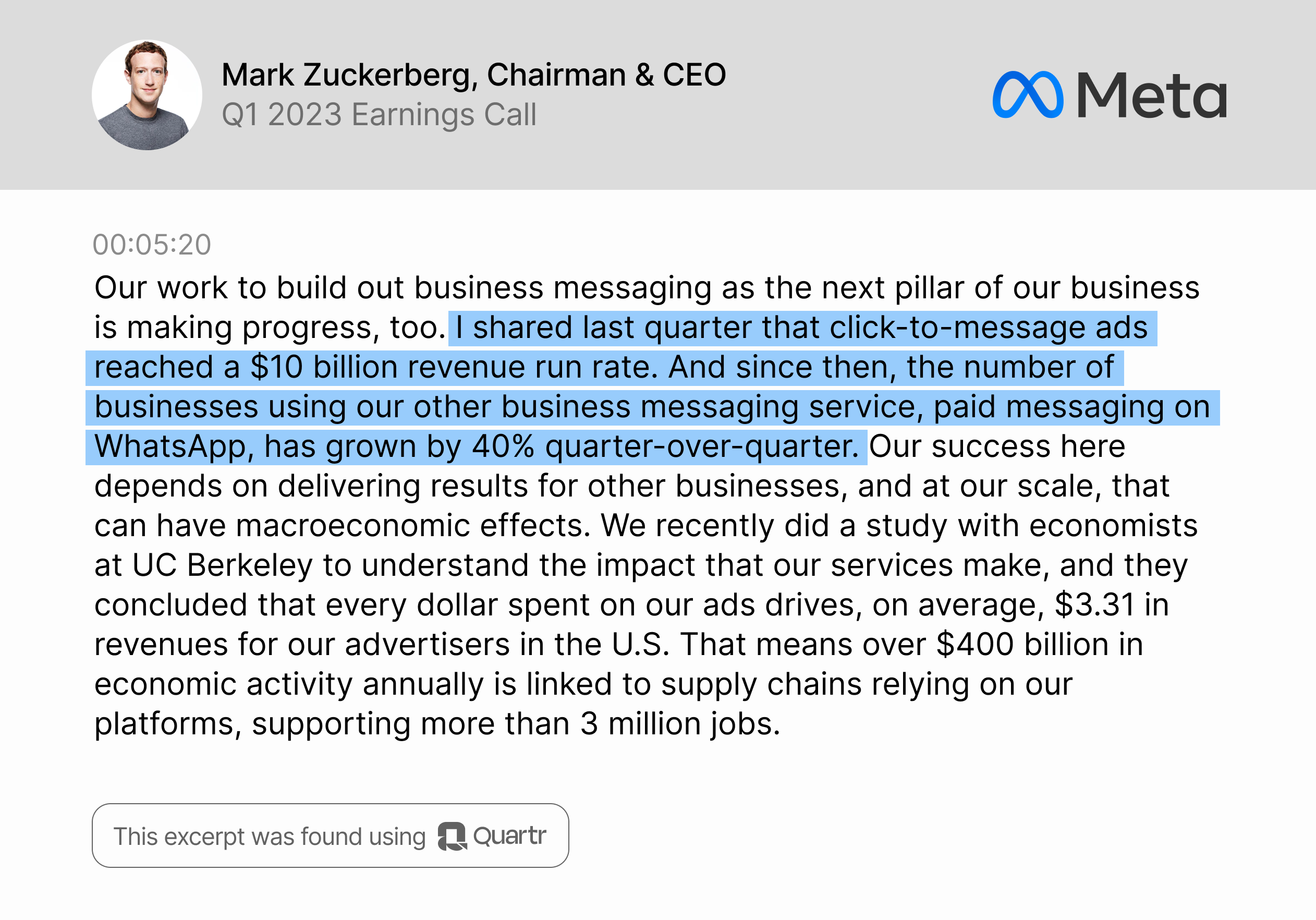 Quảng cáo Click-to-Message tăng 40% so với quý trước, chạm mức doanh thu bán hàng $10 tỷ đô trong quý I: