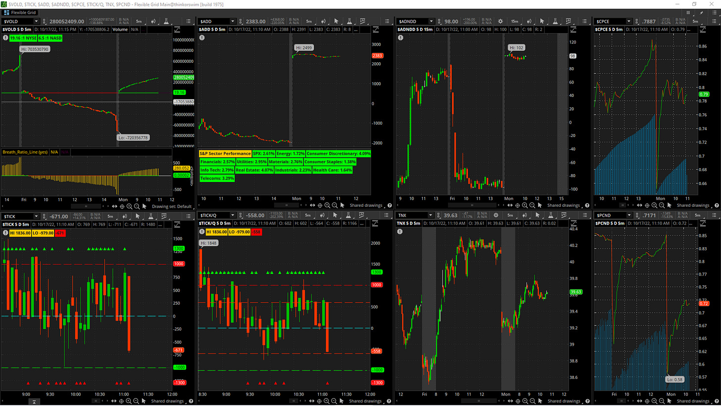Bên cạnh đó, sự tập trung của nhà đầu tư chuyển hướng về mùa ER sắp tới với tâm lí khá lạc quan theo hướng: “Lợi nhuận và doanh thu doanh nghiệp không bị, hoặc chưa bị, ảnh hưởng nhiều từ điều kiện vĩ mô như thị trường đang nhận xét” giúp cho buyer làm chủ thị trường trong buổi sáng với internal pegged ở vùng bullish xuyên suốt nửa đầu phiên giao dịch.