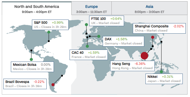 Thị trường kinh tế thế giới trải qua một cuối tuần nhiều biến động. Tại Trung Quốc, nhà đầu tư nói chung phản ứng mạnh mẽ trước với việc cựu chủ tịch Trung Quốc Hu Jintao (Hồ Cẩm Đào) bị đưa ra khỏi Đại Hội Đảng ngay trên sóng truyền hình trong bước ngoặt thể hiện sự tập trung quyền lực của Xi Jinping (Tập Cận Bình) trước khi tiếp tục giữ chức ở nhiệm kì thứ 3. Cổ phiếu trên thị trường nội địa giảm gần 7% với khối NASDAQ GDC gãy tới -16% chỉ trong buổi sáng nay.