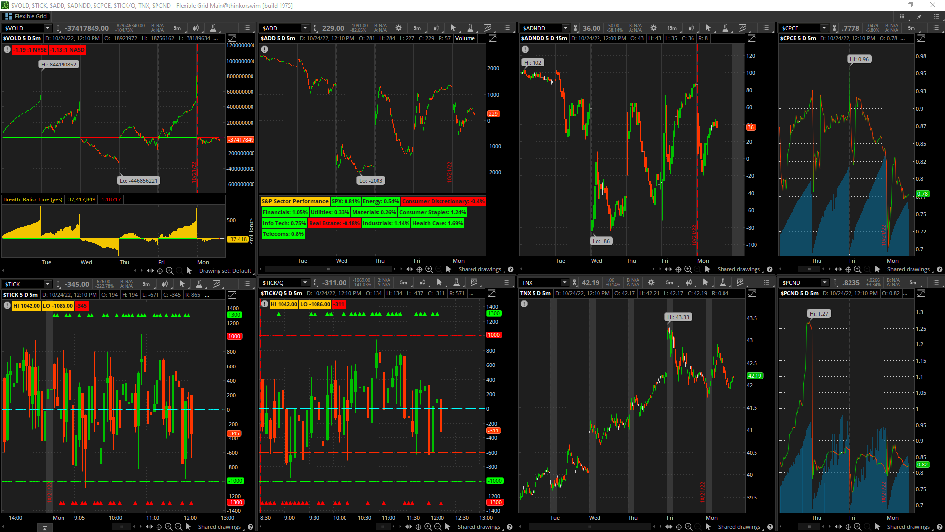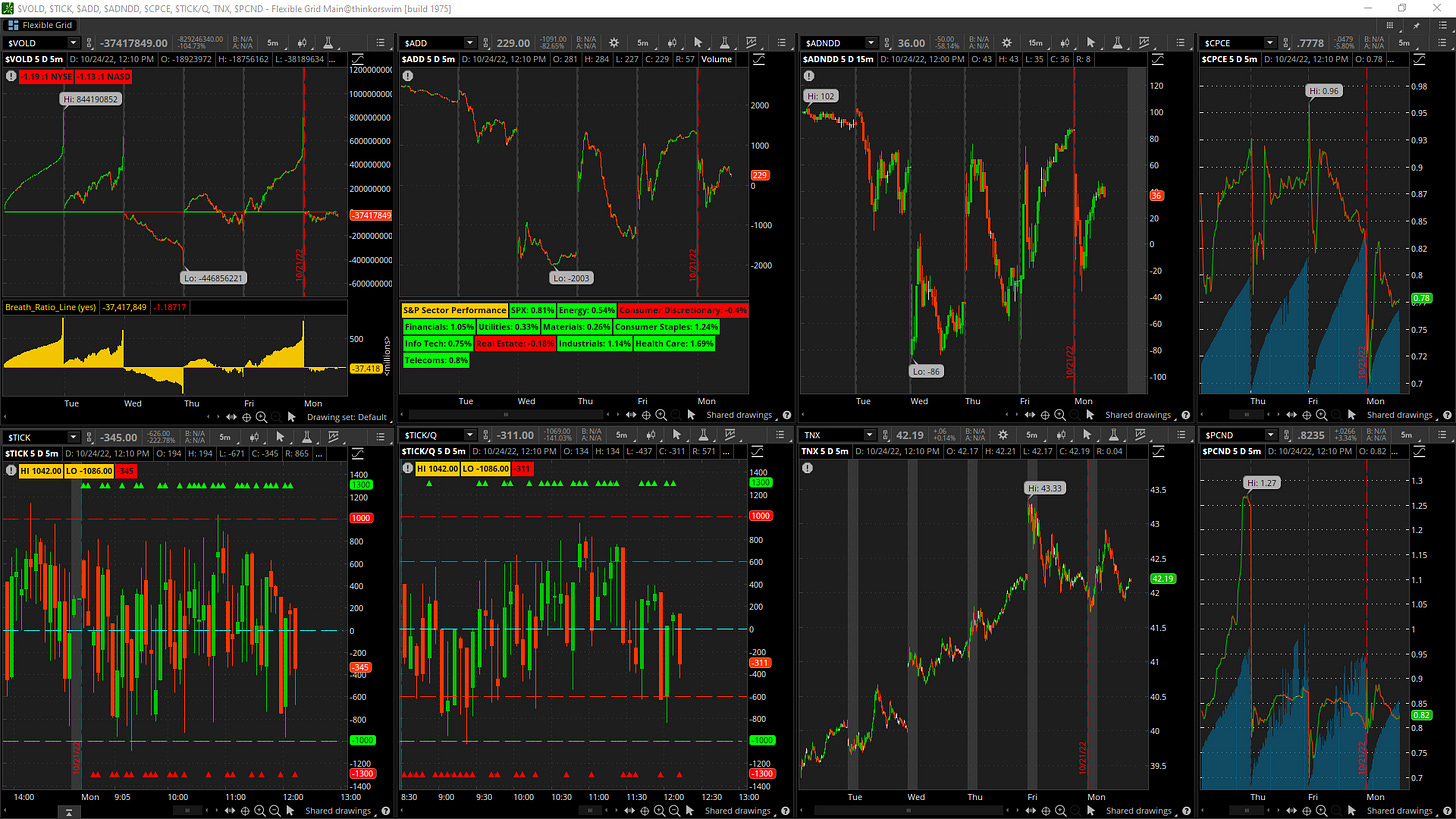 Trên internal, thị trường nhìn chung không có dấu hiệu bullish trái với sự thay đổi của index. Volume khá cân bằng ở trạng thái 1-1 với $TICK neutral cho thấy phần lớn lực mua ngày hôm nay là sector rotation từ khối international qua domestic stocks với 3800~SPX tiếp tục là resistance hiện tại tuy nhiên lực kéo từ put options ở đầu dưới đã giảm đáng kể. Với internal hiện tại, phần nhiều stocks sẽ bị pin dưới mốc SPX~3800 trong nửa cuối của phiên giao dịch.