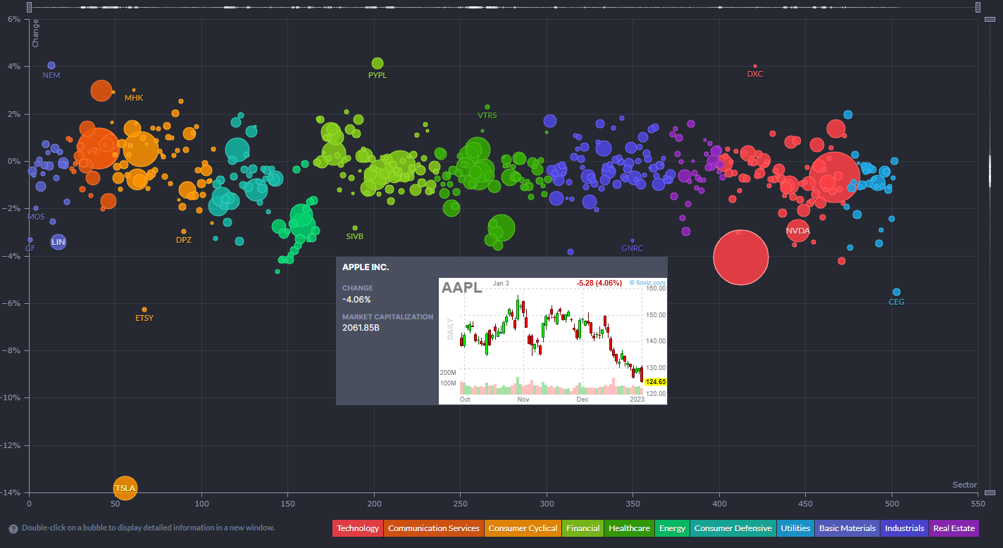 Thị trường mở cửa phiên giao dịch đầu năm 2023 khá ổn định với SPY đẩy nhẹ qua 386 trước khi fake out và tụt nhanh về ngay 380 dưới sức ép cực lớn của Tesla sau số liệu giao nhận xe quý IV công bố ngày hôm qua thấp hơn dự báo. Ngay sau đó, lực bán tiếp tục dồn vào Apple và các cổ phiếu năng lượng nói chung, phần lớn từ những dữ liệu kinh tế đáng thất vọng đến từ Trung Quốc, đẩy SPY đi qua 380 trong khi VIX đẩy mạnh hơn 9% trong buổi sáng.