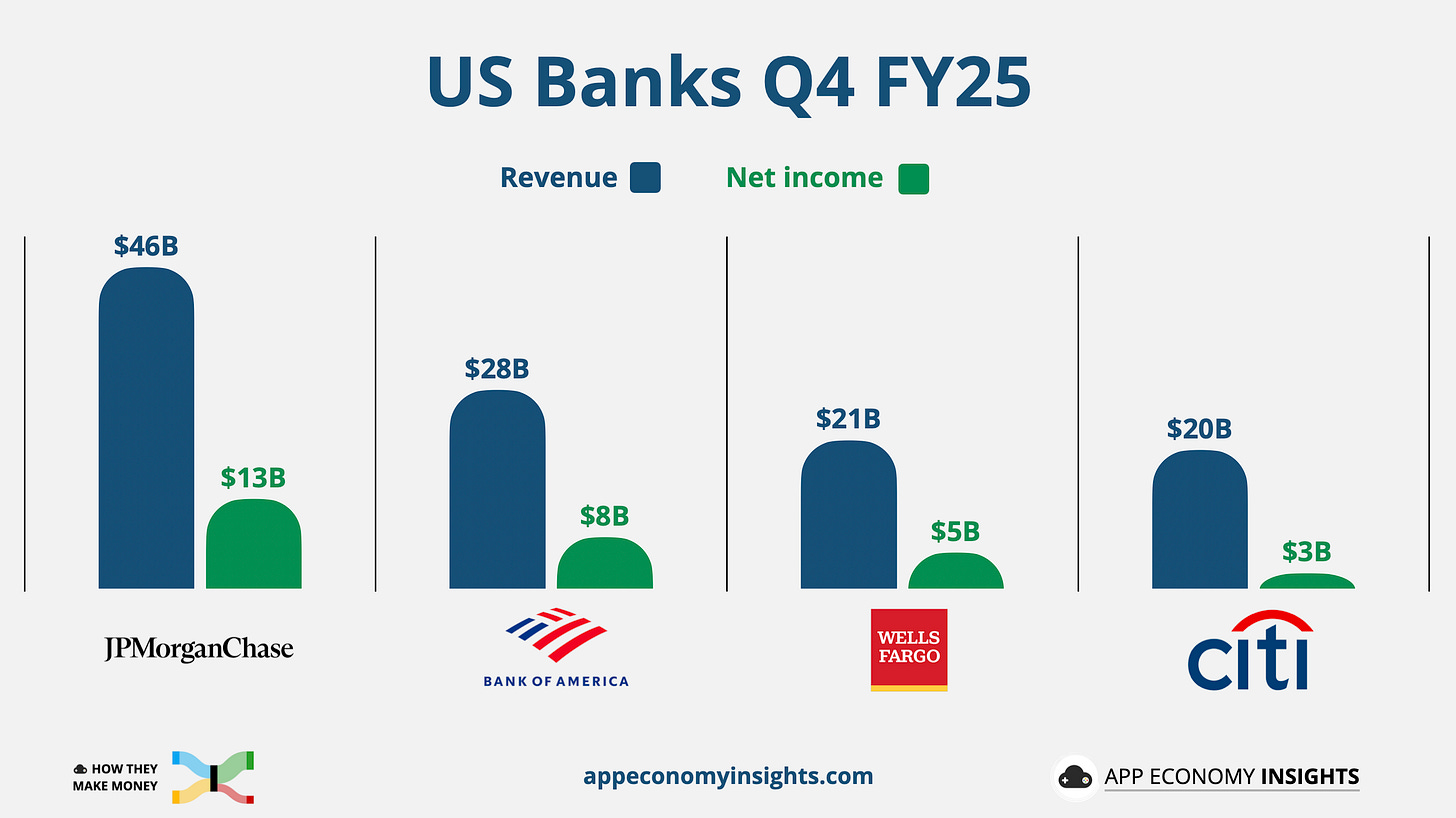 Trong bài viết tuần này, Viet Hustler sẽ cùng bạn đọc nhìn lại toàn cảnh ngành ngân hàng Mỹ quý 4/2025 và định giá của 5 cổ phiếu lớn nhất: