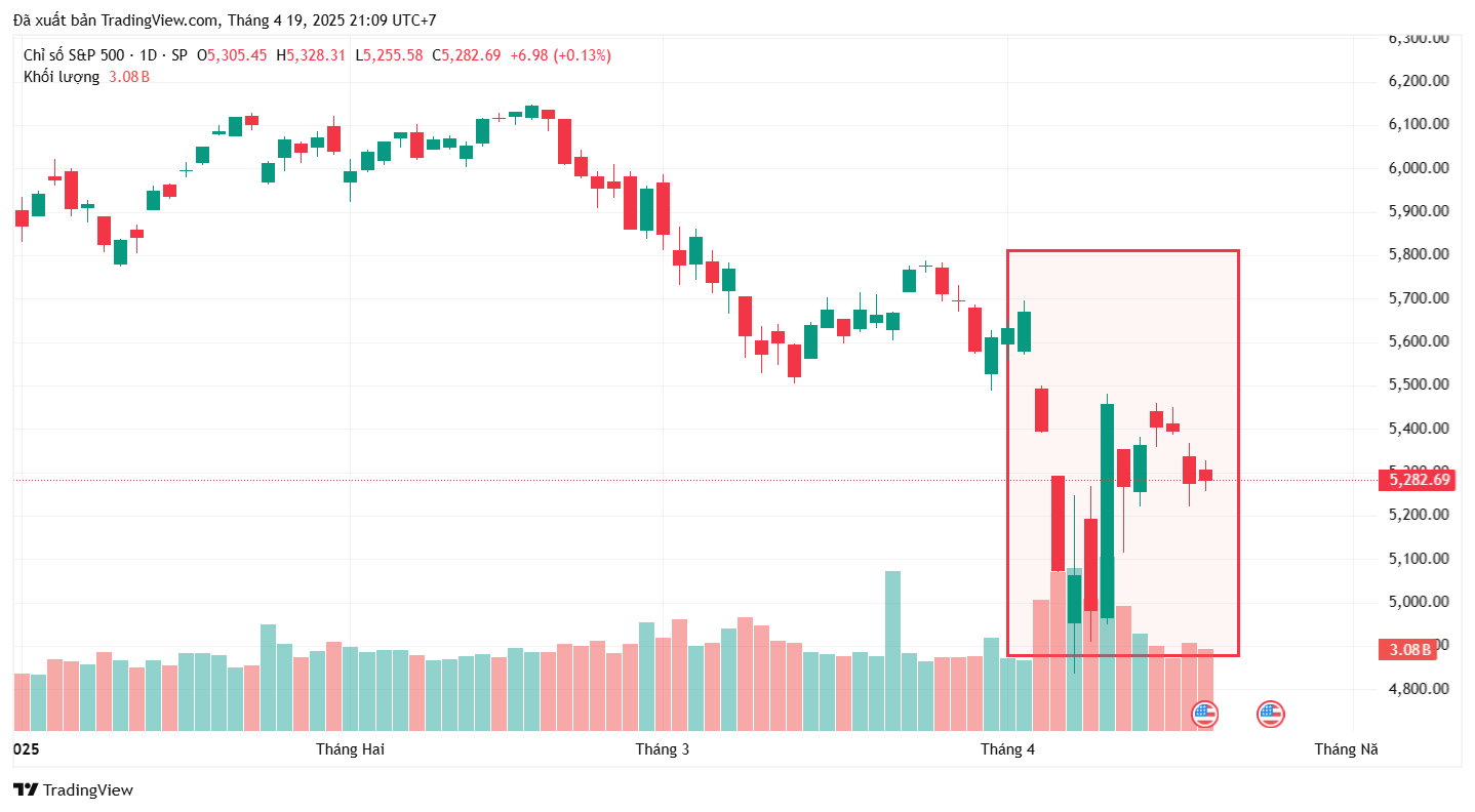 Chỉ trong tuần đầu tháng 4, các chỉ số lớn của Mỹ lao dốc hơn 5% vì lo ngại về thương mại và chính sách, rồi bật tăng mạnh sau thông báo hoãn thuế quan 90 ngày, trước khi sụt giảm trở lại.