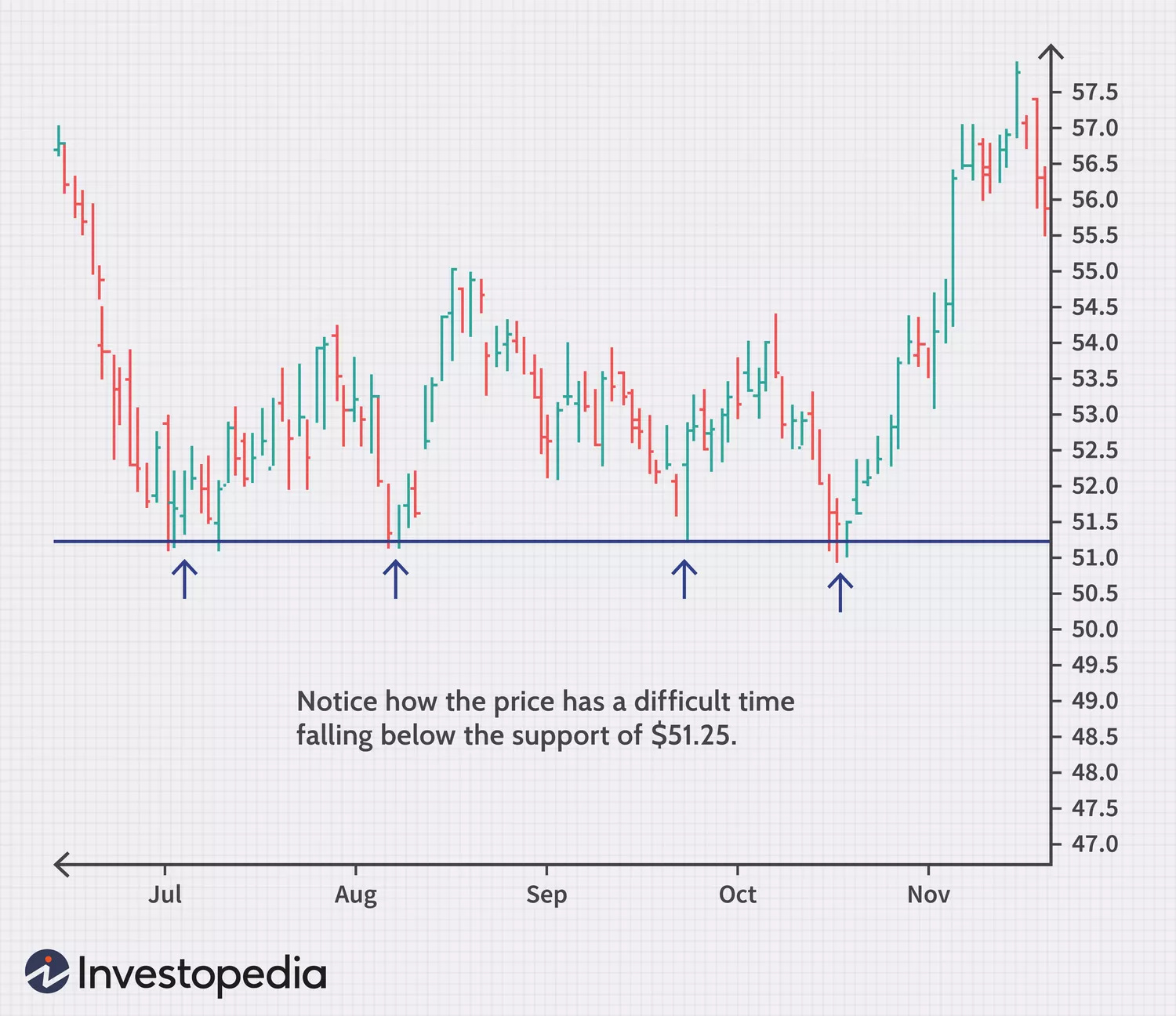 Ví dụ bên dưới: vùng giá hỗ trợ rất chắc ở $51.25 → Cổ phiếu sẽ khó điều chỉnh giảm quá sâu khỏi mức $51.25!