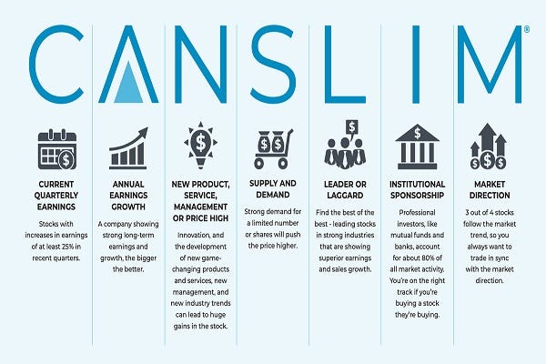 CANSLIM là mô hình giúp nhà đầu tư chọn ra những cổ phiếu tăng trưởng tốt được William O’Neil phát minh. CANSLIM viết tắt của 7 chữ cái bao gồm: