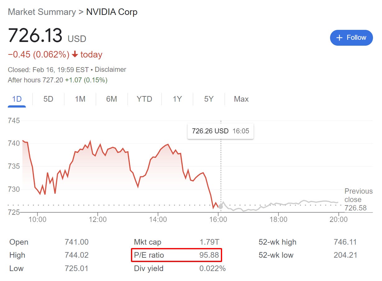 Ví dụ: $NVIDIA hiện có P/E bằng 95.88