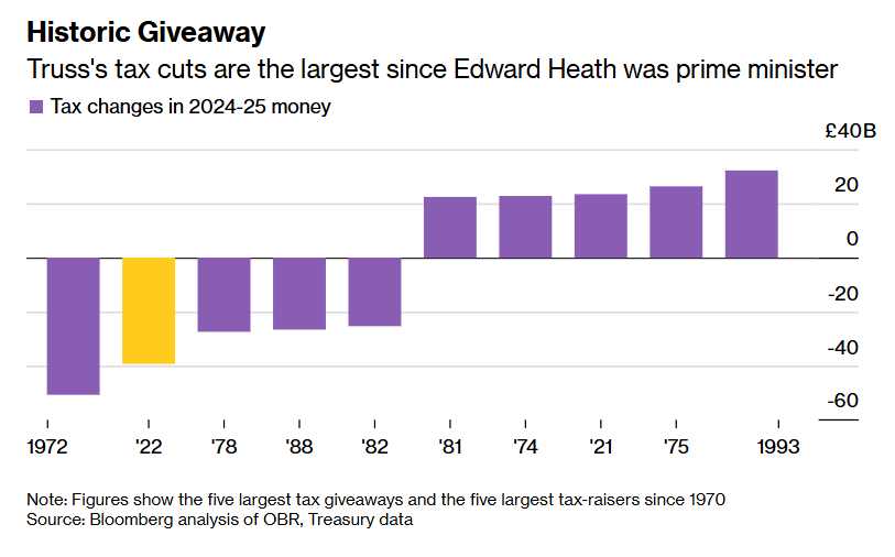 Ngày 09/23/2022, tân Thủ tướng Anh Liz Truss công bố gói cắt giảm thuế trị giá 45 tỷ bảng - mức cắt giảm lớn nhất kể từ năm 1972.