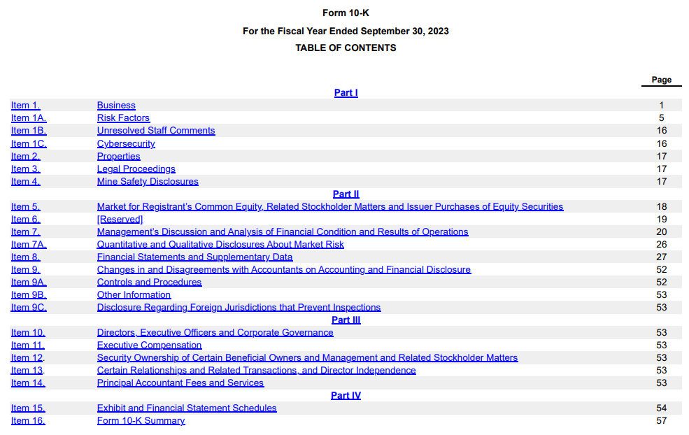 Cấu trúc điển hình của 10-K thường gồm 3 phần: