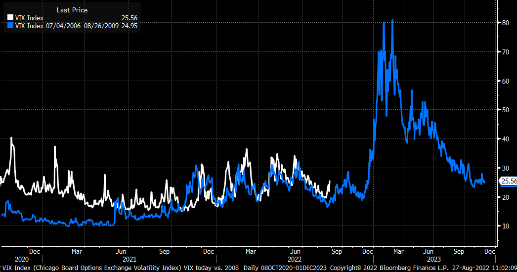 Ngoài ra, đây là so sánh tương đồng giữa VIX hiện tại và thời điểm ngay trước market crash 2008: