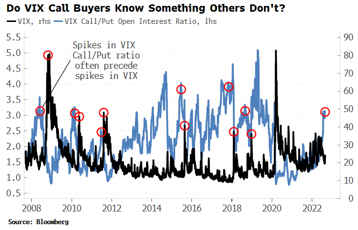 VIX có thể được coi là dấu hiệu dự báo sát nhất về sự kiện tuần vừa qua. Viet Hustler có nhận xét về việc VIX sẽ tăng trong tuần do nhu cầu hedge trước Jackson Hole tăng cao, và Bloomberg xác nhận traders dồn vô mua VIX call trong ngày thứ 5 ngay trước ngày phát biểu: