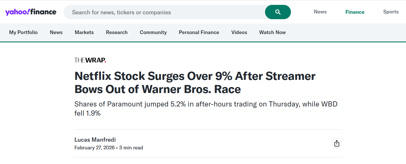Ngay lập tức, cổ phiếu Netflix tăng mạnh. Thị trường thưởng cho kẻ bỏ cuộc - đó là tín hiệu đáng sợ nhất của cả thương vụ.
