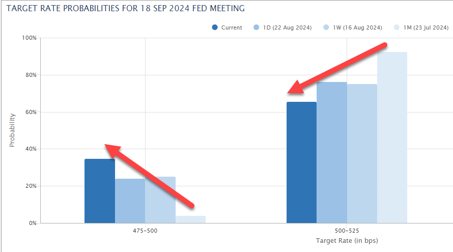 Thị trường suy nghĩ 65% FED cắt 0.25%, 35% FED cắt 0.5% sau khi Powell phát biểu: