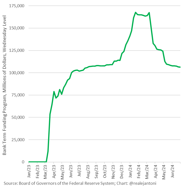Chương trình BTFP mà Fed cho các ngân hàng thương mại vay ưu đãi vẫn chưa được đảo ngược,