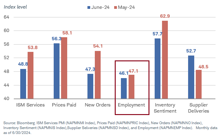 PMI dịch vụ đã theo đà của PMI sản xuất (ISM): giảm xuống dưới ngưỡng 50 (ngưỡng thu hẹp) trong tháng 5.