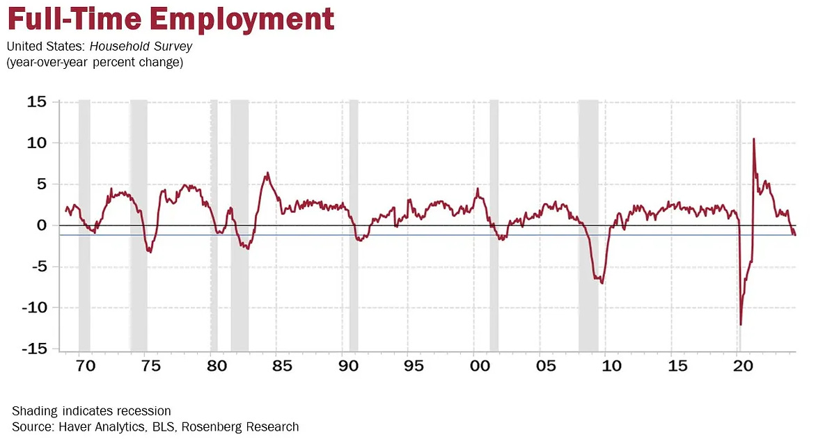 … tương đương với mức tăng trưởng âm (-1.2% y/y) của tổng số việc làm full-time trên thị trường: chỉ xảy ra trong các giai đoạn suy thoái!