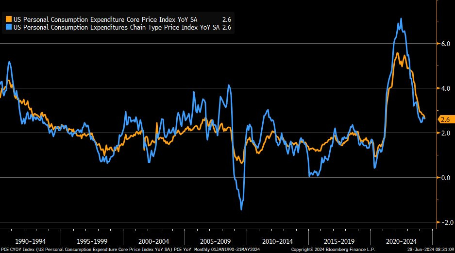 Tăng trưởng PCE tổng hợp và cốt lõi (tháng 5) đều đạt 2.6% y/y