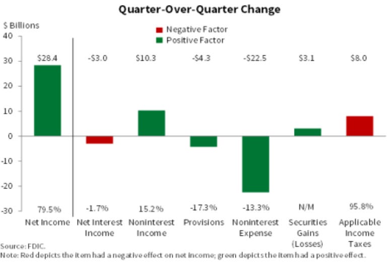 Một phần là do FDIC giảm chi phí đánh giá đặc biệt (special assessment expense) cho hệ thống ngân hàng: giảm tới 12 tỷ USD.